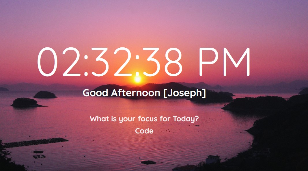 Change background accouding to the current time and store the name, and the focus of that day using Local Storage of browser!